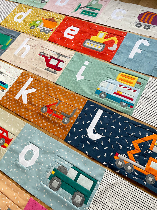 PDF Anleitungspaket – ABC-Fahrzeug Quilt, individuelle Blockauswahl