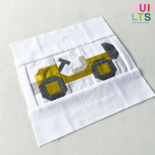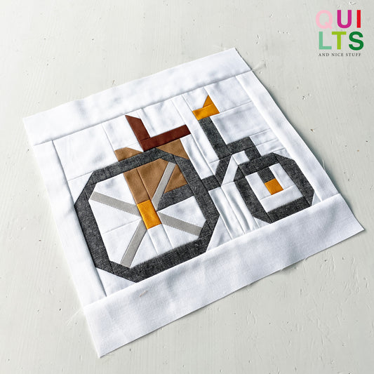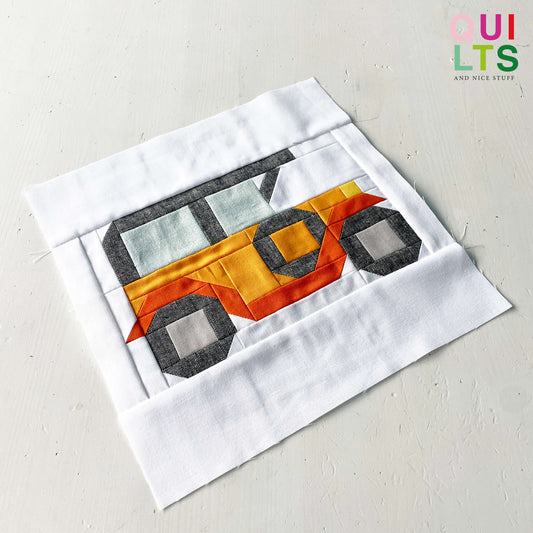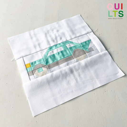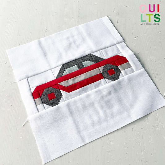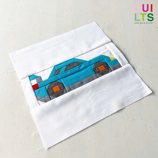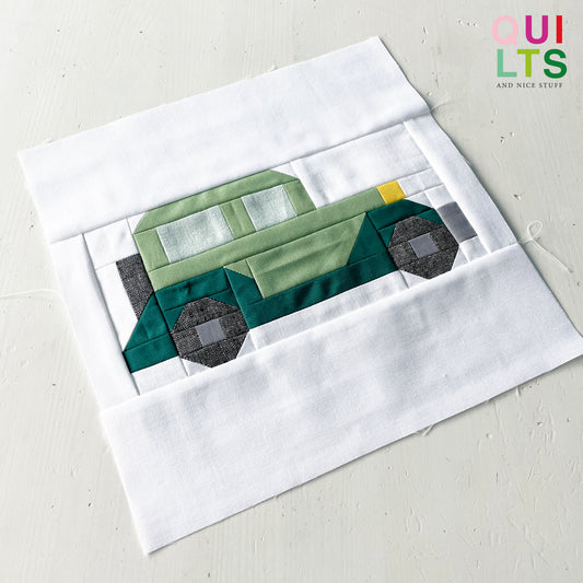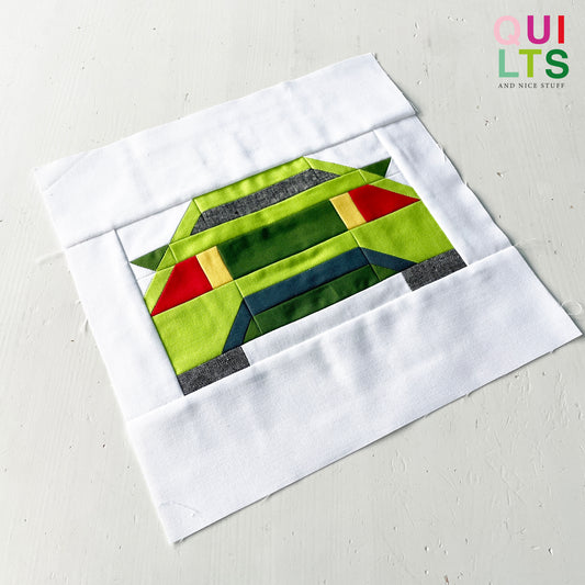 Die Classic-Car-Quiltblöcke werden auf traditionelle Weise genäht. Das bedeutet, dass alle Schnittteile nur aus Quadraten und Rechtecken bestehen, die Du gemäß der bebilderten Schritt-für-Schritt-Anleitung zusammennähst – ganz ohne komplizierte Rundungen oder „Foundation Paper Piecing“. Dadurch eignen sich die Anleitungen auch hervorragend für Nähanfänger!