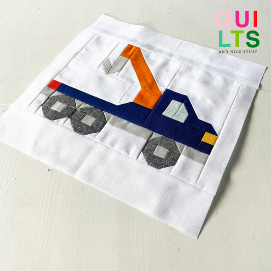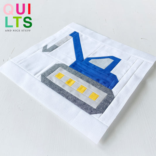 In meinem Shop findest Du eine Vielzahl an Baustellen Fahrzeugen wie den Bagger, den Betonmischer, den Kran oder die Planierraupe. Oder sollen es lieber Arbeitsfahrzeuge sein, wie der Polizeiwagen, der Abschleppwagen oder die Lokomotive. Auch biete ich lustige Fahrzeuge wie den Eiswagen, ein Fahrrad oder den Wohnwagen an. Jeder hat sein ganz bestimmtes Lieblingsfahrzeug! Aus dieser Vielzahl an Fahrzeug Blöcken lassen sich unendlich viele verschiedene Quilt Assemblies zusammenstellen. Oder frag doch lieber gleich die kleine Fachfrau und oder den kleinen Fachmann, welche Fahrzeuge die liebsten sind.