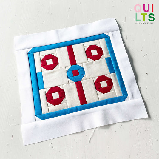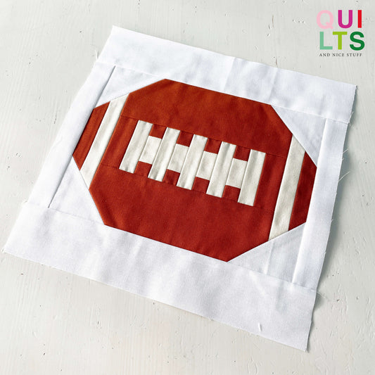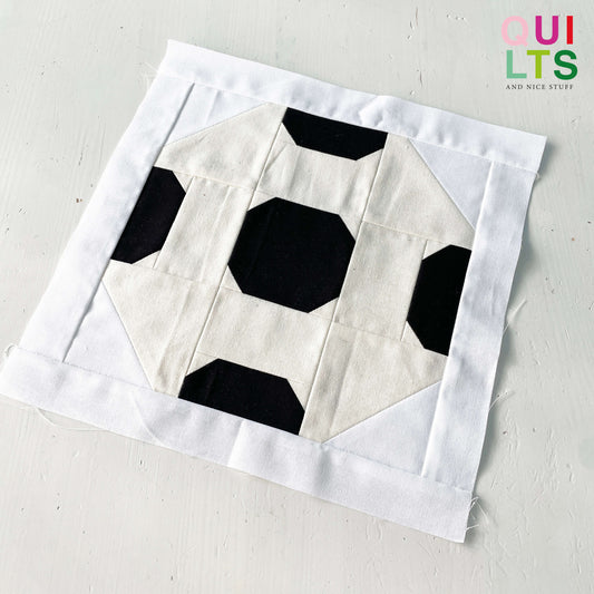 Die Sport-Quiltblöcke werden auf traditionelle Weise genäht. Das bedeutet, dass alle Schnittteile nur aus Quadraten und Rechtecken bestehen, die du gemäß der bebilderten Schritt-für-Schritt-Anleitung zusammennähst – ganz ohne komplizierte Rundungen oder „Foundation Paper Piecing“. Diese Anleitungen eignen sich daher auch hervorragend für Nähanfänger!