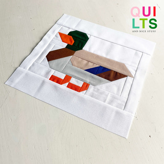 Alle Blöcke können miteinander kombiniert werden, da sie alle die gleichen Größen von 9 und 18 Zoll haben. Diese Größen werden Dir automatisch in jeder Anleitung zur Verfügung gestellt. Möchtest Du einen fröhlichen und bunten Kinderquilt mit mehreren Blöcken oder möchtest Du einzelne Blöcke für Kissen oder niedliche Taschen aussuchen? Entscheide selbst, was Du aus den Tierblöcken von Quiltsandnicestuff kreierst.