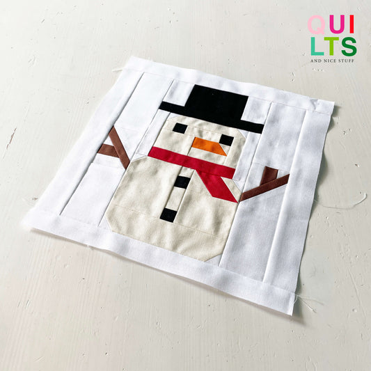 Verschönere deine Weihnachtszeit mit zauberhaften Motiven wie dem niedlichen Schneemann, der Geschenkbox und den festlichen Glöckchen, die zusammen eine stimmungsvolle Winterlandschaft erschaffen. Mit den handgefertigten Details zu jedem Block wird dieser Quilt nicht nur ein wunderschöner Hingucker, sondern auch ein Unikat, das dich und deine Familie während der Festtage begleitet.