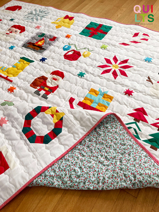 Entdecke die festliche Kollektion des Weihnachts-Quilts – ein wahres Meisterwerk, das deine Weihnachten mit zauberhaften Motiven und lebendigen Farben bereichert. Der Quilt enthält liebevoll gestaltete Blöcke, die jedes Weihnachtsherz höher schlagen lassen. Die detailreichen Motive von Santa Claus, Rentieren, Tannenbäumen, Geschenken und vielen weiteren winterlichen Symbolen sind ideal für deine festliche Dekoration.