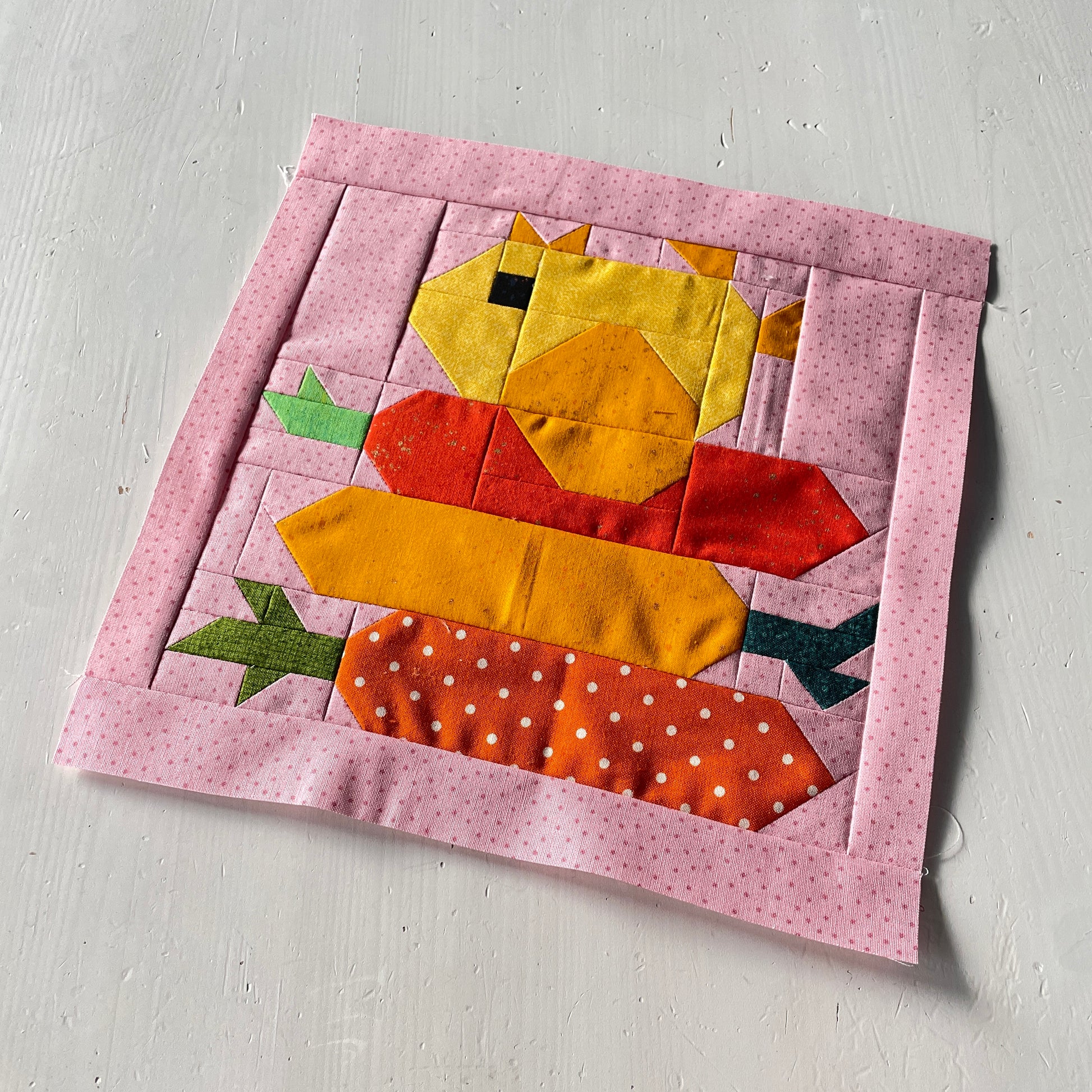 Baby Chicken with Carrots – PDF Quilt Block Pattern